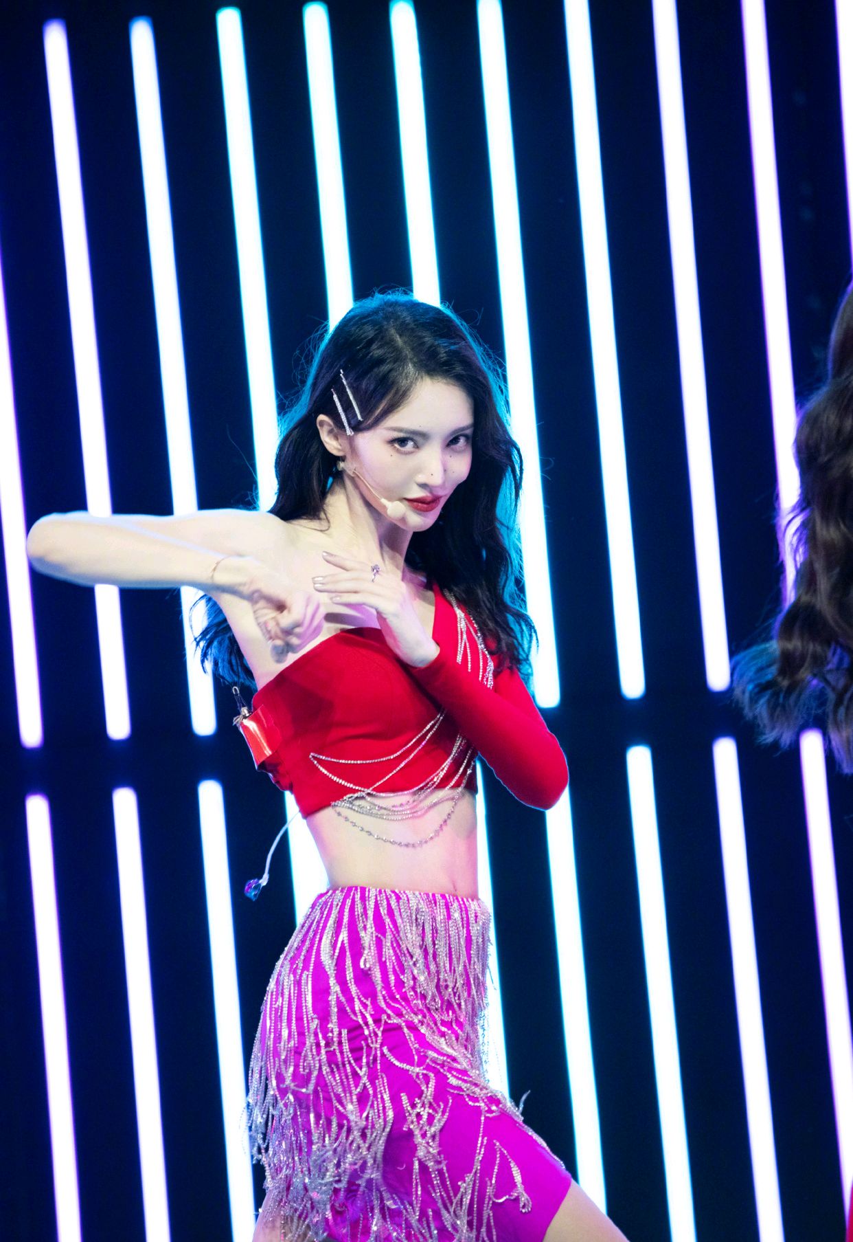 不得不承认,金晨就是一个行走的衣架子,被她的穿搭造型给惊艳到了,身穿一件红色短款上衣搭配一条紫色流苏裙,用美字不足以形容,用惊艳两个字更贴切。